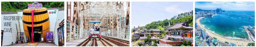 + Trải nghiệm chuyến tàu lửa Haeundae Blueline ven biển Haeundae: Nơi được giới trẻ vô cùng yêu thích check in khi tới Busan. Quý khách được ngắm nhìn những toa tàu nhiều màu sắc dọc bờ biển Haeundae.Quý khách được trải nghiệm đi tàu ngắm cảnh ngắm biển Busan thơ mộng)